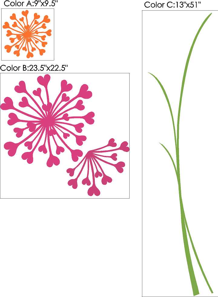 The dandiheart comes in the 3 colors of your choice. Please see the 2nd picture for sizes & the layout for each color.